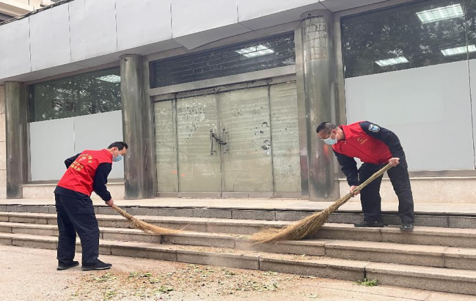 市保安公司志愿服務隊到八大局附近路段,清理路面垃圾,擺放共享單車,為來往游客提供暖心幫助,把小我融入大我,與家鄉并肩奮斗,用實際行動為文明城市建設貢獻力量。
